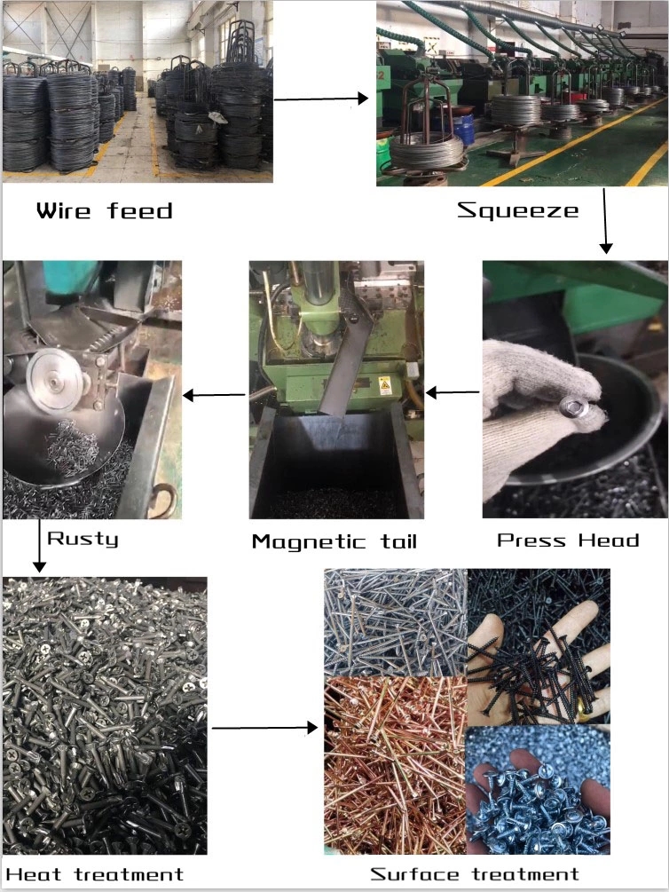 | Head | Head Style: countersunk flat head, double flat head, pan head, oval head.Popular heads are either pan or flat, and popular gauges are 8 and 10. |